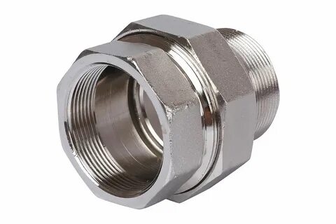 Разъемный сгон, смонтированный из двух частей с помощью накидной гайки (соединение типа «американка»). Резьба – внутренняя/наружная, цилиндрическая трубная по ГОСТу 6357-81. Детали изготовлены методом горячей объемной штамповки из высококачественной латуни марки ЛС 59-1. Уплотнительное кольцо – из синтетического каучука EPDM. Фитинги рассчитаны на рабочее давление (PN) 2,5 и 4,0 МПа и температуру транспортируемых сред от -20 до +150 °С.