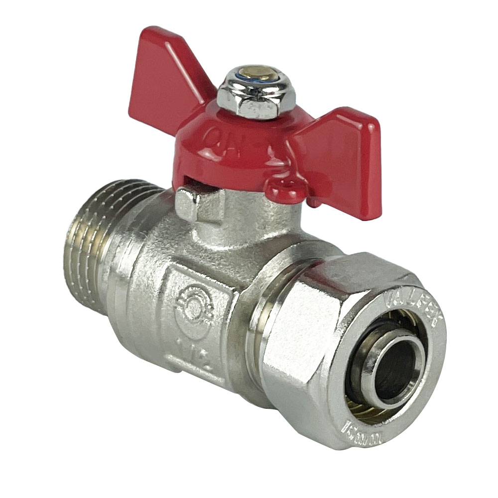 Кран шар. обжимной с переходом на НР, ручка-бабочка VALFEX 16х1/2" НИКЕЛИР-Й (100/10) К