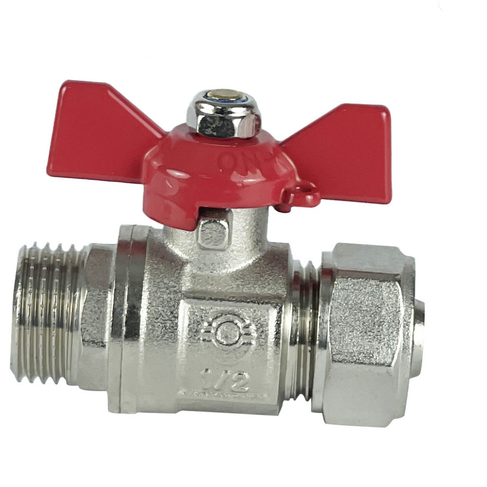 Valfex VF.341.NB.16012 Кран шар. обжимной с переходом на НР, ручка-бабочка 16х1/2" НИКЕЛИР-Й (100/10) К