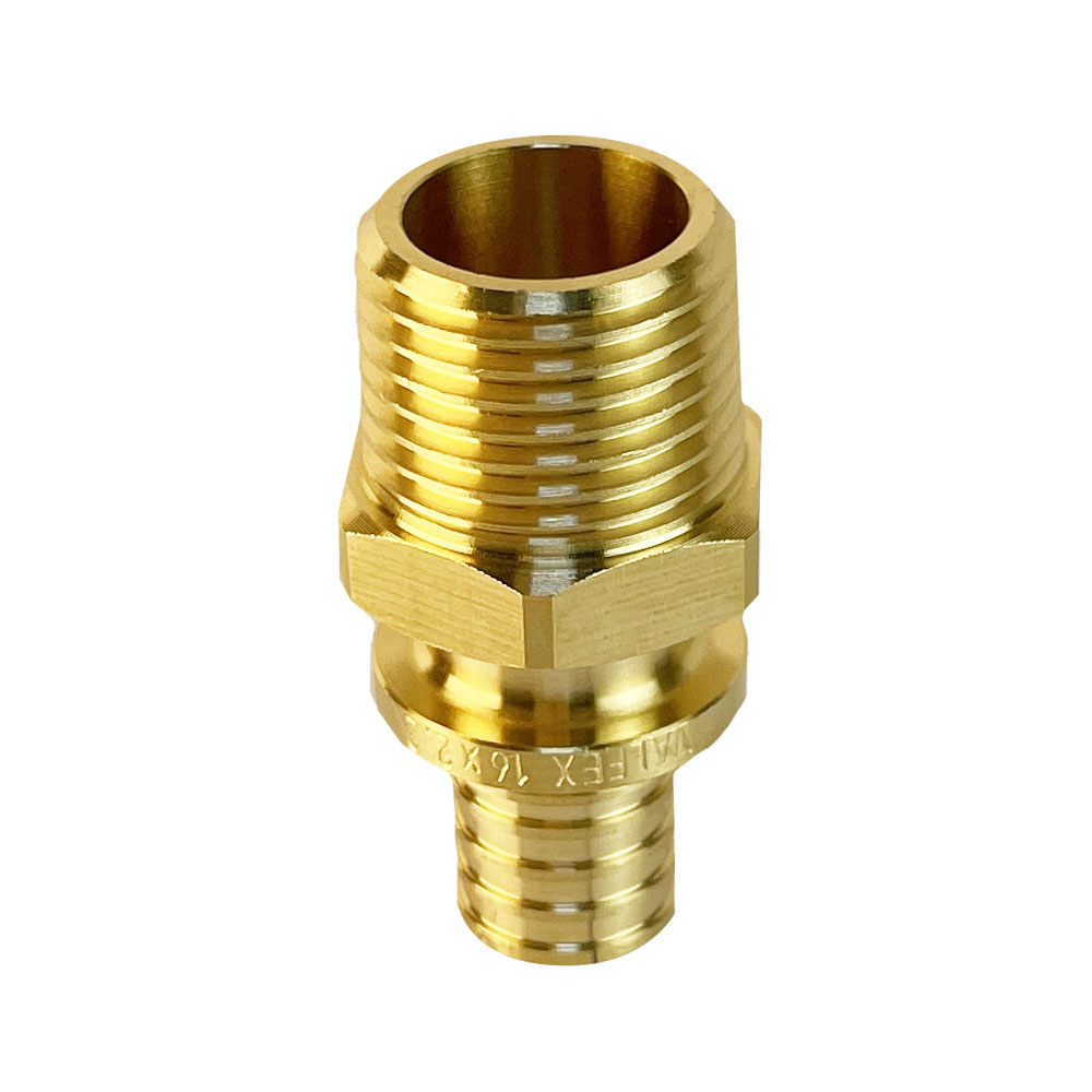 Латунные аксиальные соединители надвижные с переходом на наружную резьбу предназначены для создания неразъемных соединений труб из сшитого полиэтилена PEX и полиэтилена повышенной термостойкости PE-RT размерной серии S3,2 (SDR 7,4) по ГОСТ 32415-2013 и присоединения к магистрали, имеющей на конце внутреннюю резьбу. Применяются в системах питьевого и хозяйственного водопровода, горячего водоснабжения, отопления, сжатого воздуха, а также на технологических трубопроводах, транспортирующих жидкости, не агрессивные к материалам труб и соединителей.