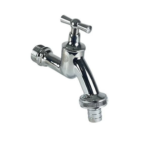 Вентиль водоразборный декорированный может быть смонтирован как внутри помещения, так и на улице. Предназначен для забора воды из промышленных и технических трубопроводов. Подойдет как для ГВС так и для ХВС. Корпус вентиля изготовлен из латуни, которая обладает хорошей коррозионной стойкостью. С одной стороны вентеля расположена наружняя резьба, с другой стороны штуцер, для подключения шланга.
