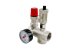 - Комплектация: автоматический поплавковый воздухоотводчик, отсечной клапан для воздухоотводчика, предохранительный клапан и манометр-индикатор