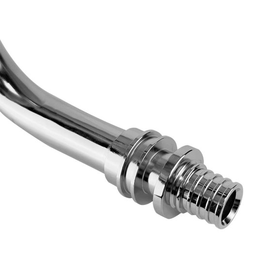 Трубка аксиальная приборная Г-образная предназначена для подключения трубопровода из сшитого полиэтилена к арматуре отопительных приборов. Присоединяемые трубы должны иметь следующие геометрические параметры (наружный диаметр/толщина стенки): 16x2,2; 20x2,8