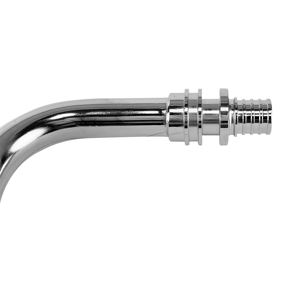 Трубка аксиальная приборная Г-образная предназначена для подключения трубопровода из сшитого полиэтилена к арматуре отопительных приборов. Присоединяемые трубы должны иметь следующие геометрические параметры (наружный диаметр/толщина стенки): 16x2,2; 20x2,8