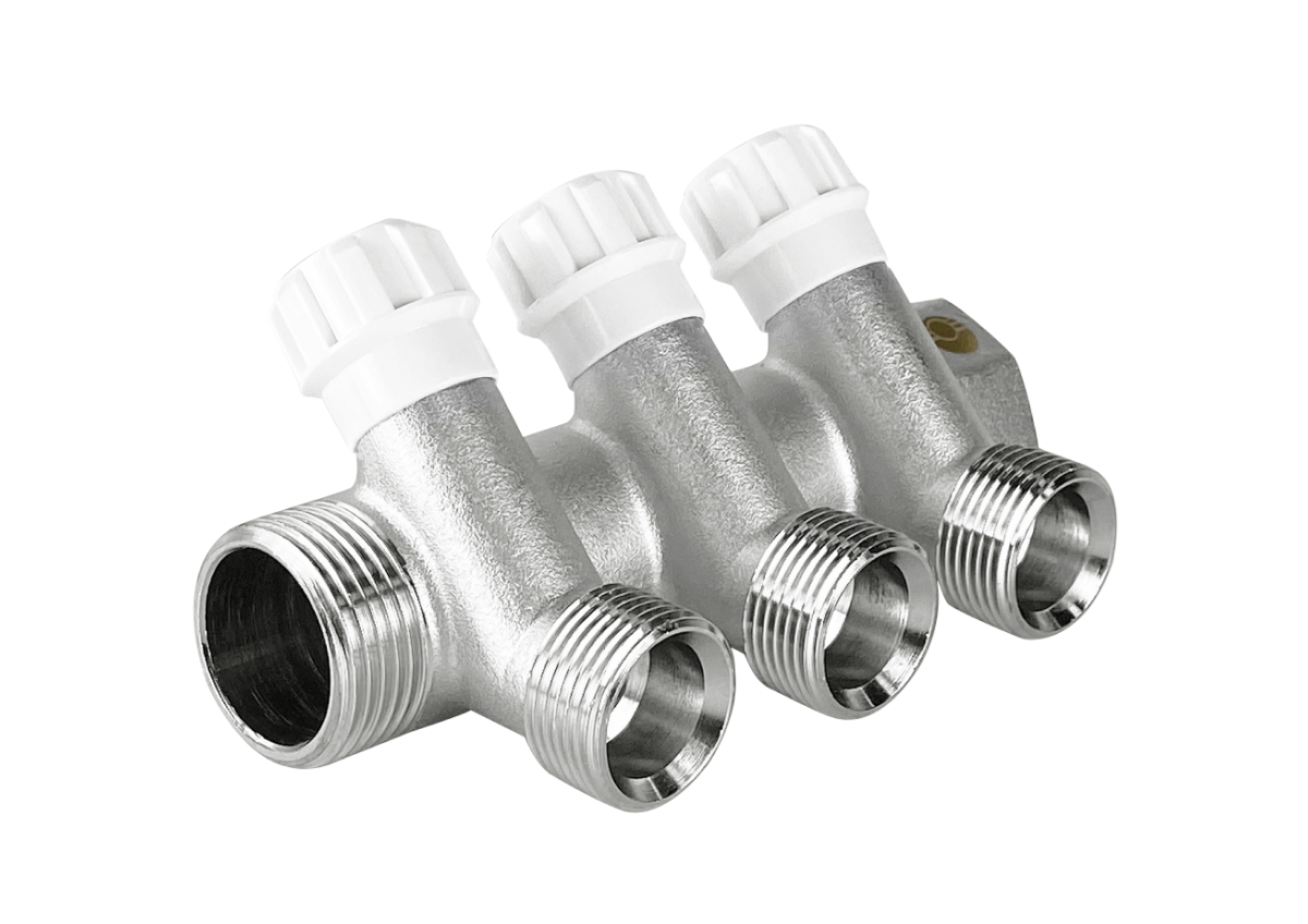 Коллектор с регулирующими вентилями помогает сбалансировать расход в системах водяного отопления и распределяет поток транспортируемой среды по потребителям.