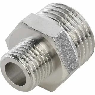 Ниппель переходной с никелевым покрытием (наруж.-наруж.) — фитинг, представляющий собой изделие с наружной резьбой на обоих концах, с помощью которых он соединяется с другими участками трубопровода разного диаметра, резьба цилиндрическая трубная по ГОСТу 6357-81. Предусмотрен участок корпуса шестигранной формы, под гаечный ключ, что облегчает монтаж соединения.