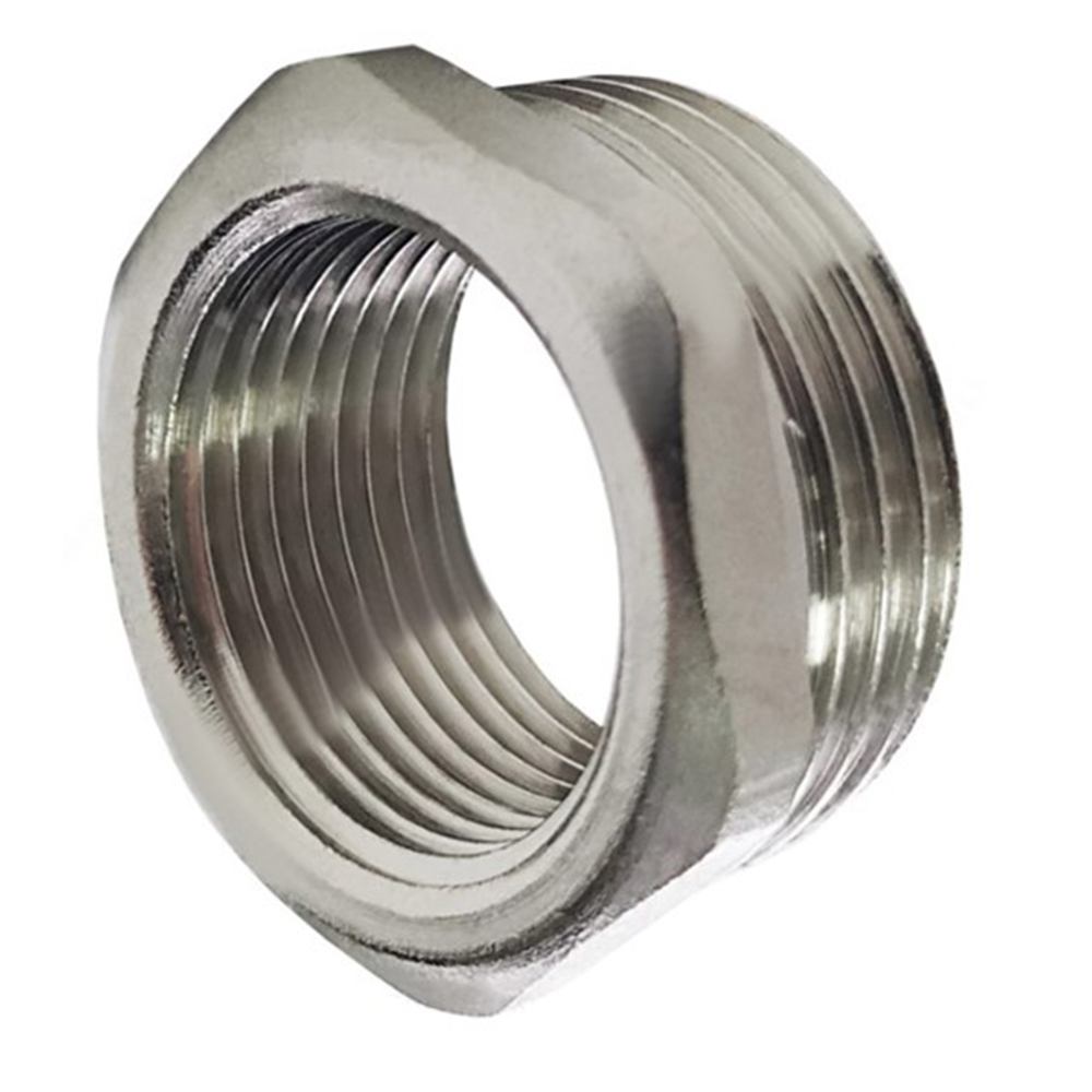 Футорка – это фитинг, обеспечивающий соединение труб разного типоразмера, подключение трубопровода к элементу системы с большим диаметром присоединительного патрубка, ремонт (замену) поврежденной резьбы. Футорка изготовлена методом горячей объемной штамповки из высококачественной латуни марки ЛС 59-1 с гальваническим нанесением никелевого покрытия. Резьба – наружная/внутренняя, по типу – трубная цилиндрическая по ГОСТу 6357-81. Шестигранная головка футорки служит ее вкручиванию гаечным ключом. Фитинги рассчитаны на рабочее давление (PN) 2,5 и 4,0 МПа и температуру транспортируемых сред от -20 до +150 °С.