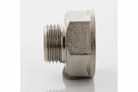 Латунный никелированный фитинг (переходник) представляет собой переход с внутренней резьбы на наружную (больший/меньший диаметр). Переходник изготовлен методом горячей объемной штамповки из высококачественной латуни марки ЛС 59-1 с гальваническим нанесением никелевого покрытия. Корпус фитинга – шестигранный – под гаечный ключ. Резьба – трубная цилиндрическая по ГОСТу 6357-81. Фитинги рассчитаны на рабочее давление (PN) 2,5 и 4,0 МПа и температуру транспортируемых сред от -20 до +150 °С.