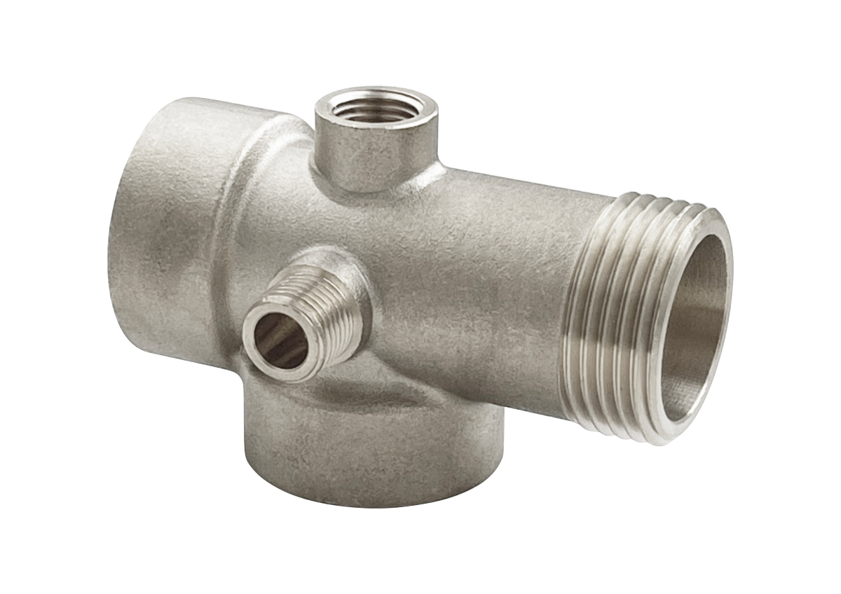 Штуцер 5-ти выводной, с никелевым покрытием позволяет соединить любую деталь с трубопроводом или емкостью, может использоваться в качестве элемента водного насоса, с целью увеличения его функционала. Крепление производится с помощью резьбы без использования сварочного аппарата.Резьба – цилиндрическая трубная по ГОСТу 6357-81. Фитинги рассчитаны на рабочее давление (PN) 2,5 и 4,0 МПа и температуру транспортируемых сред от -20 до +150 °С.