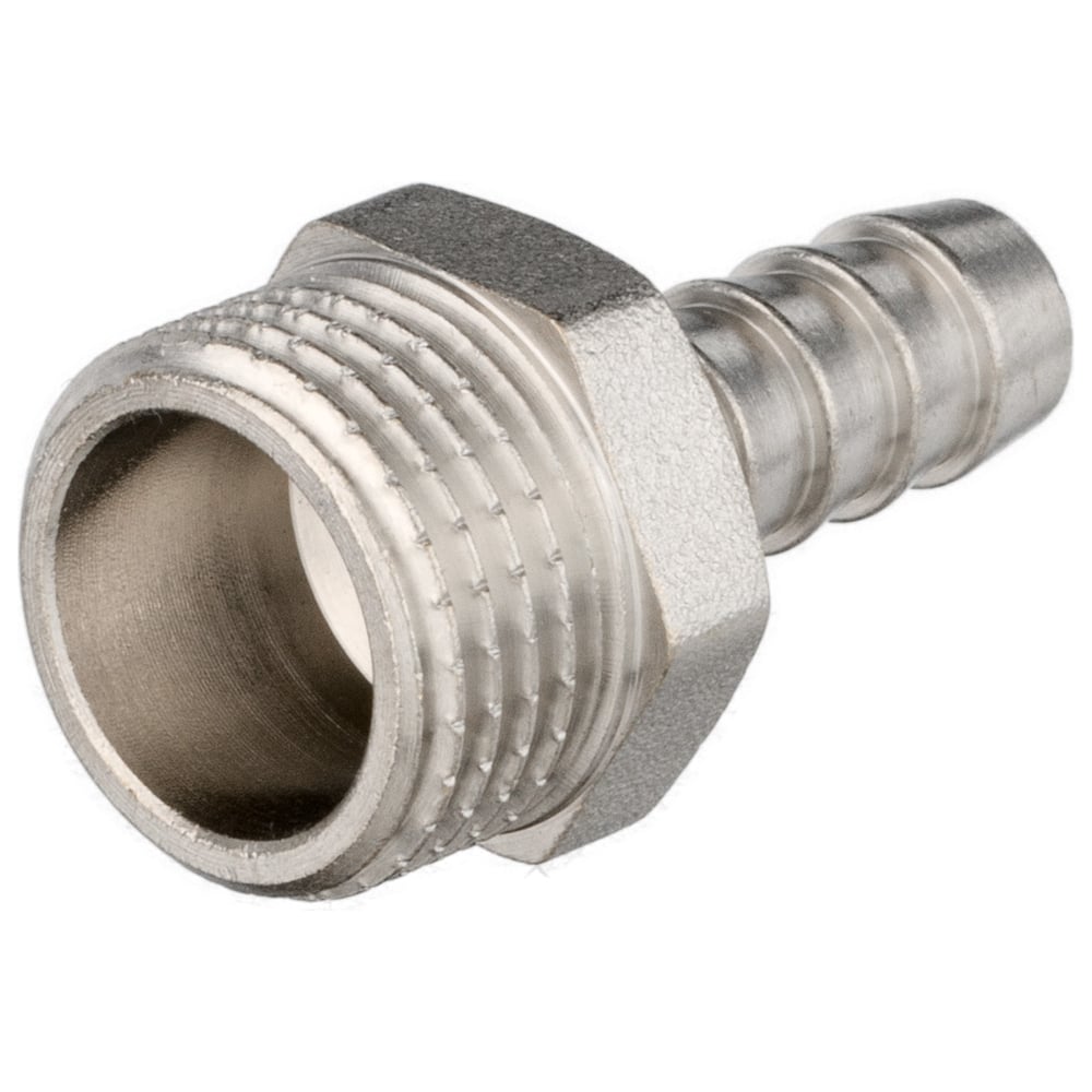 Штуцер для шланга с наружной резьбой позволяет напрямую подключать гибкие рукава, шланги различного типа к арматуре, трубам или фитингам с трубной цилиндрической резьбой без использования каких-либо переходных элементов.Штуцер имеет никелевое покрытие. Резьба – наружная, цилиндрическая трубная по ГОСТу 6357-81. Фитинг рассчитан на рабочее давление (PN) 2,5 и 4,0 МПа и температуру транспортируемых сред от -20 до +150 °С.