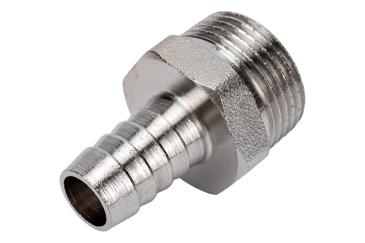 Штуцер для шланга с наружной резьбой позволяет напрямую подключать гибкие рукава, шланги различного типа к арматуре, трубам или фитингам с трубной цилиндрической резьбой без использования каких-либо переходных элементов.Штуцер имеет никелевое покрытие. Резьба – наружная, цилиндрическая трубная по ГОСТу 6357-81. Фитинг рассчитан на рабочее давление (PN) 2,5 и 4,0 МПа и температуру транспортируемых сред от -20 до +150 °С.