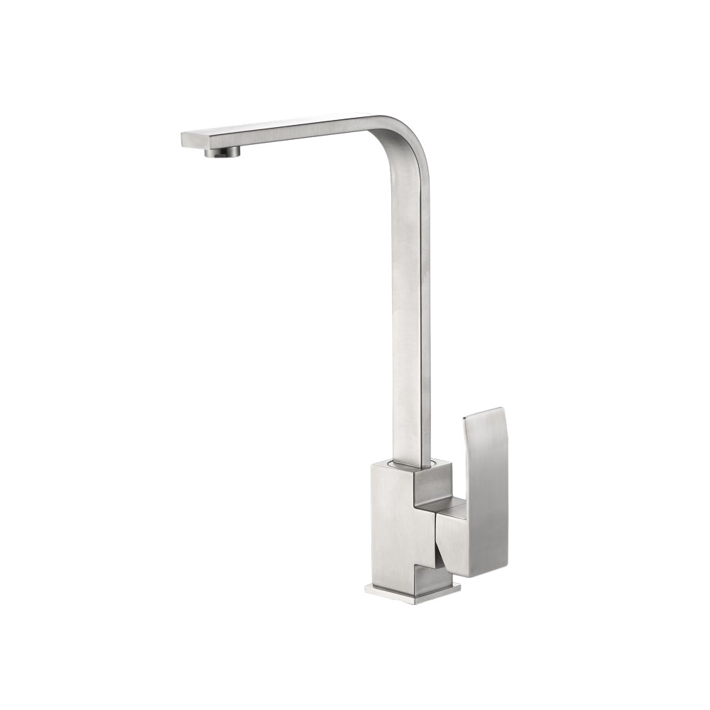 Смеситель для кухни бренда Valfex. Изготовлен из нержавеющей стали. Укомплектован аэратором. Гибкая подводка 40 см. С поворотным изливом.