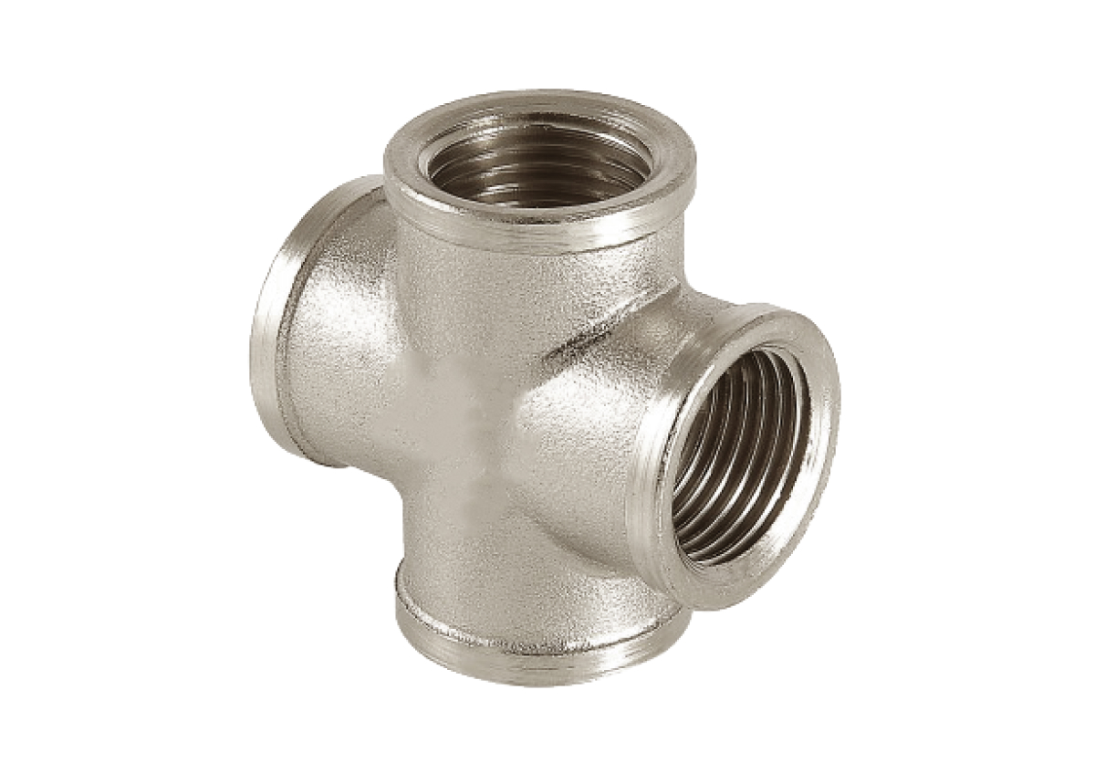 Крестовина с никелевым покрытием (внутр.) — латунный четырехсторонний фитинг, равнопроходной. Резьба — внутренняя, цилиндрическая трубная по ГОСТу 6357-81. Фитинги рассчитаны на рабочее давление (PN) 2,5 и 4,0 Мпа и температуру транспортируемых сред от -20 до +150 °С.