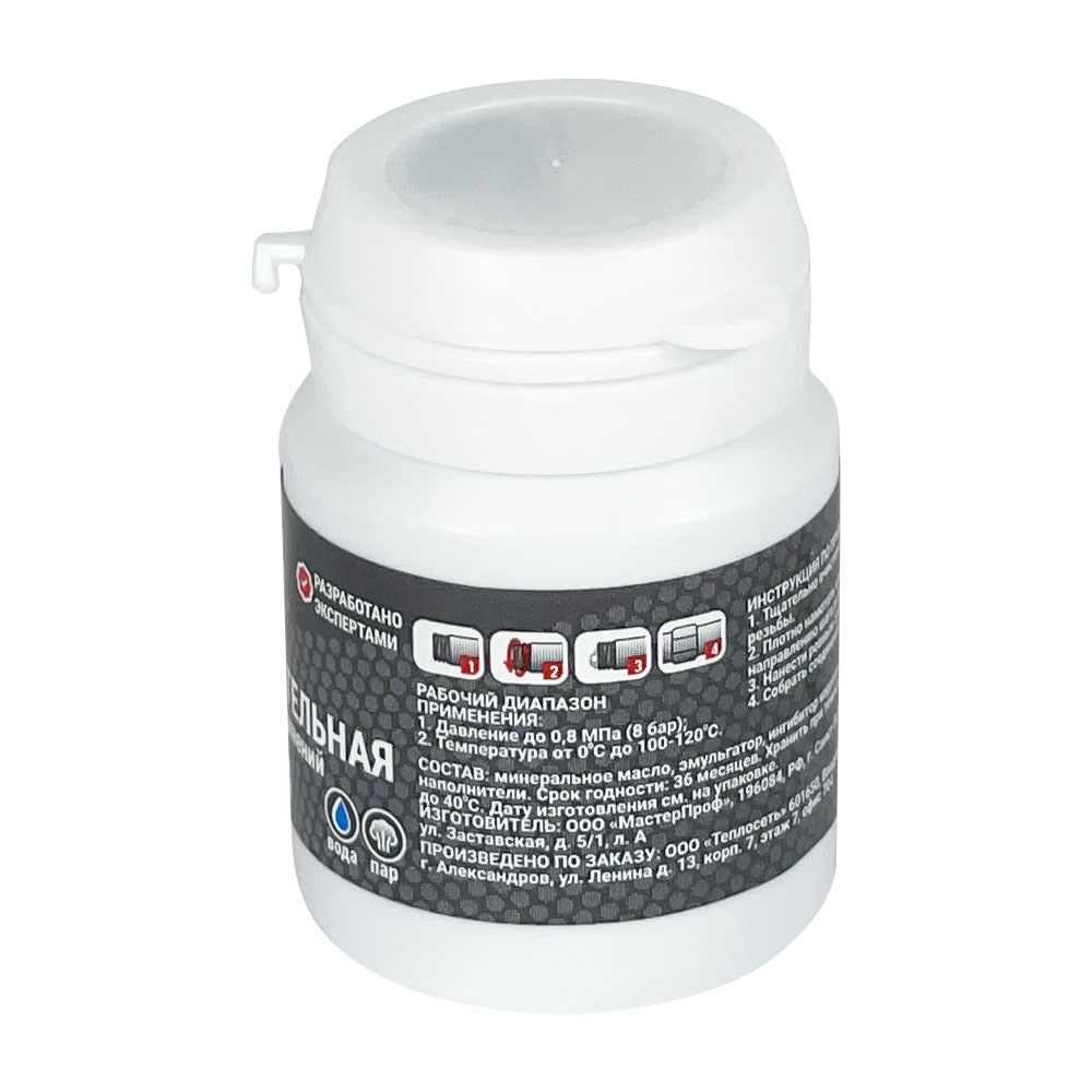 Назначение: предназначена для использования совместно с сантехническим льном для уплотнения и герметизации резьбовых соединений трубопроводов в системах водоснабжения и отопления
