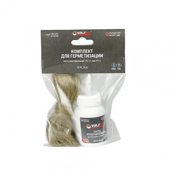 Комплект для герметизации VALFEX паста уплотнительная (70 г) + лен (14 г) (Вода, пар) (100)